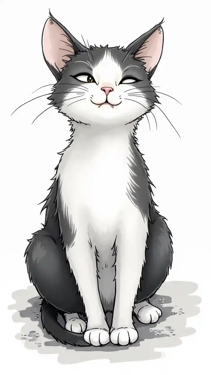 ColtenEen zwarte en witte kat illustratie stijl, schat
