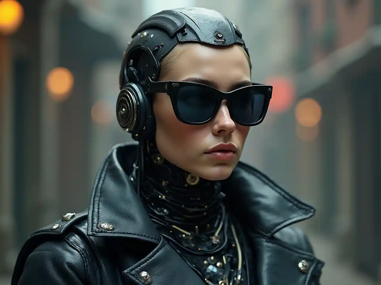 Cyborg-androïde, gekleed in zwarte bril en een leren jas