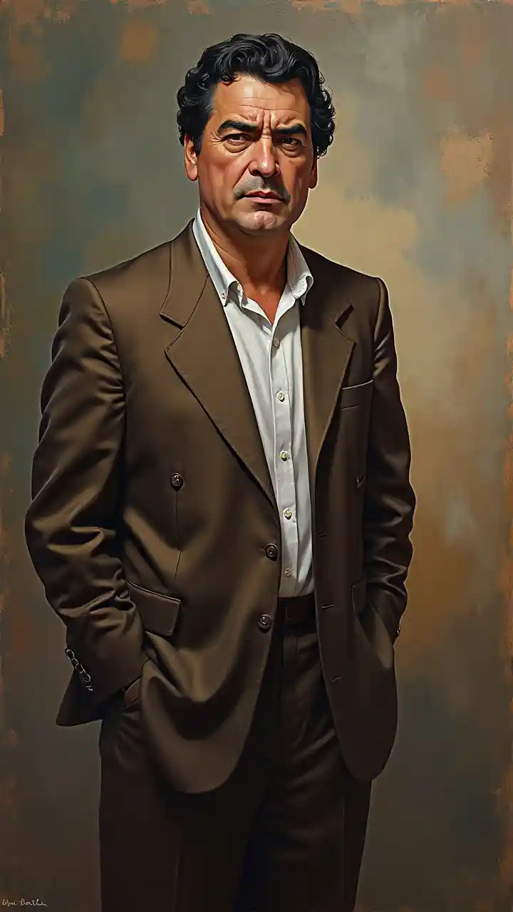 Pablo Escobar, portret, schilderij, olie, Colombia, stijl van Botero