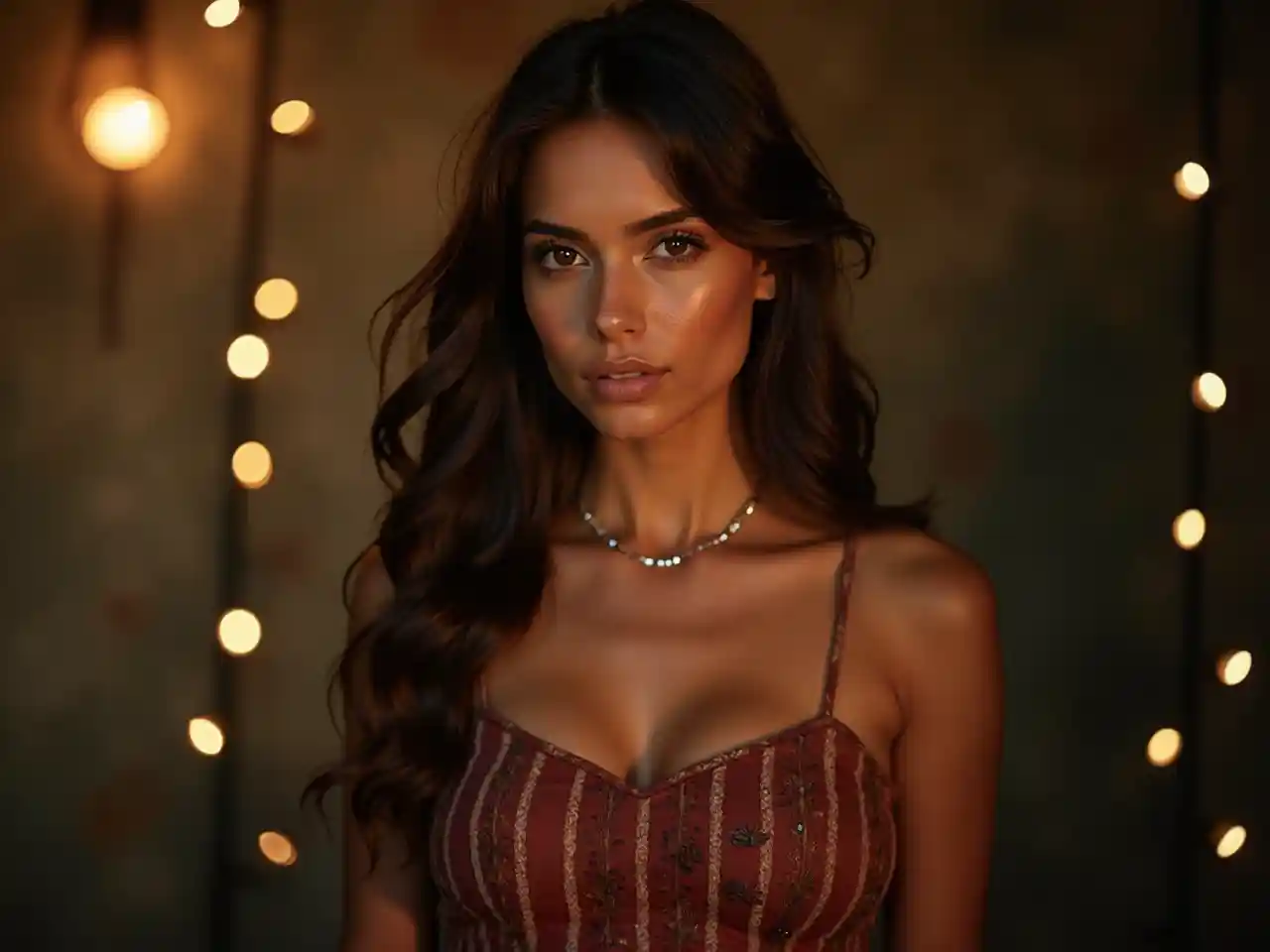 Een etnische schoonheid in de vorm van een aardse vrouw #verspreide verlichting #achtergrond met halogeen lichten #moed en zorgvuldigheid om haar rol als top-magische zichtbaar #verbazingwekkend sensueel en prachtig #full body image