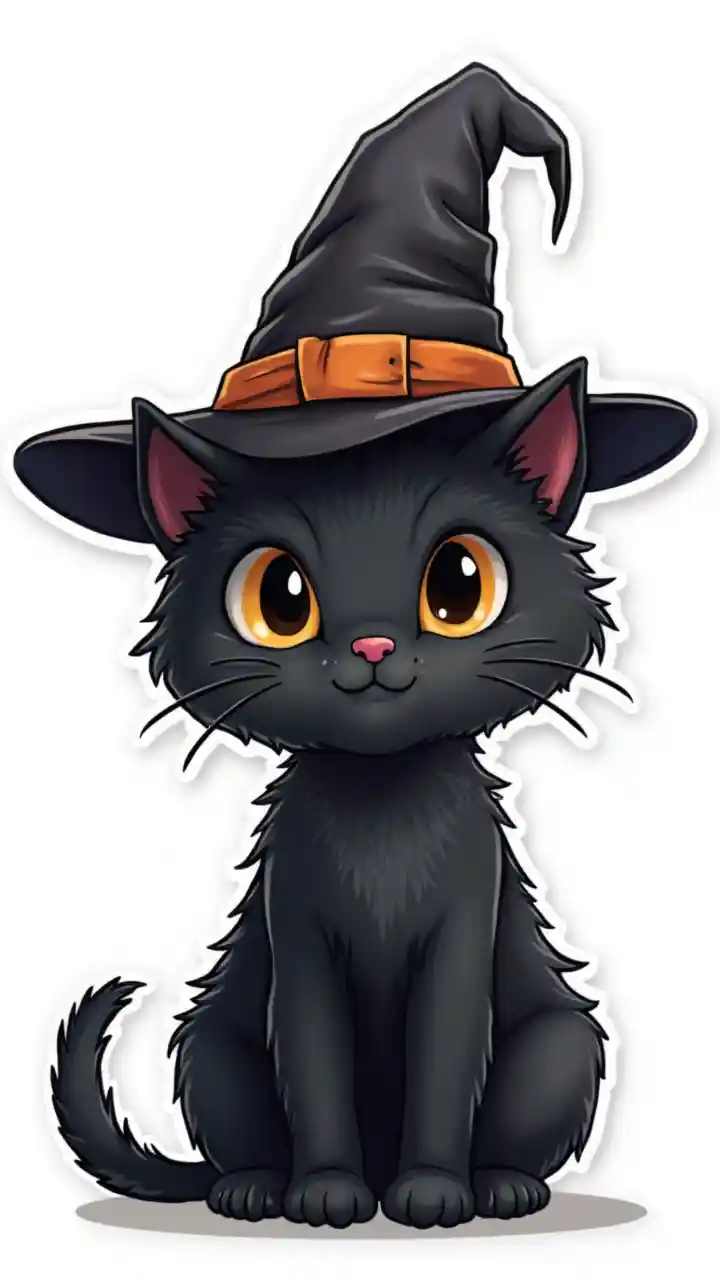 HarperEen leuke clipart voor Halloween . Een zwarte kat met een tovenaarhoed