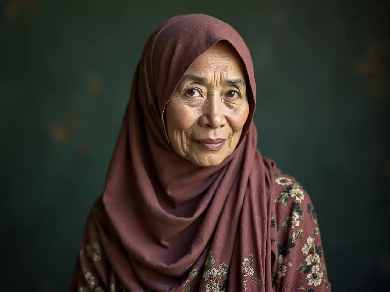 Riley30 jaar oude Indonesische vrouw, met gamis en hijab, van hoofd tot teen