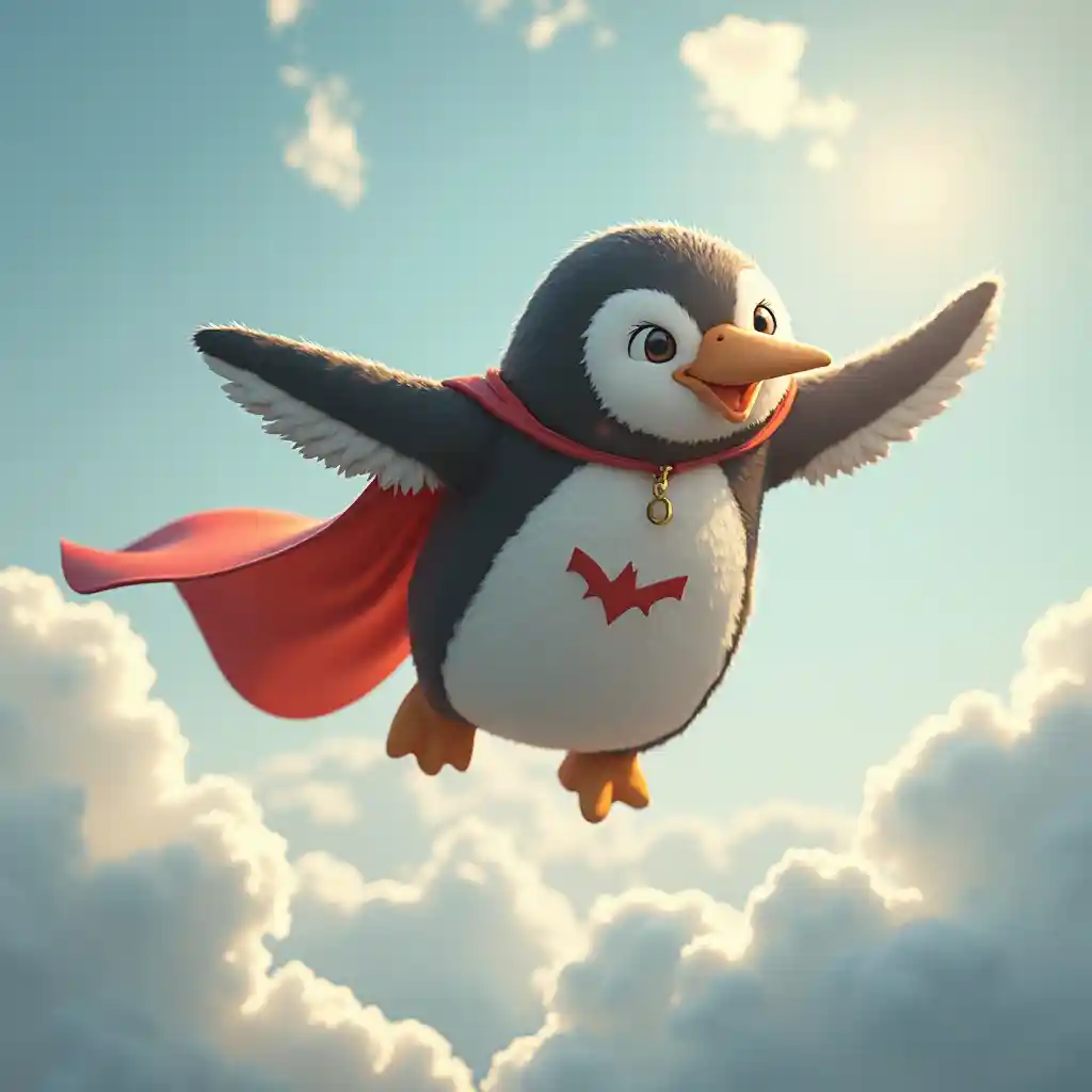 Linux Penguin Superhero in Morning Sky