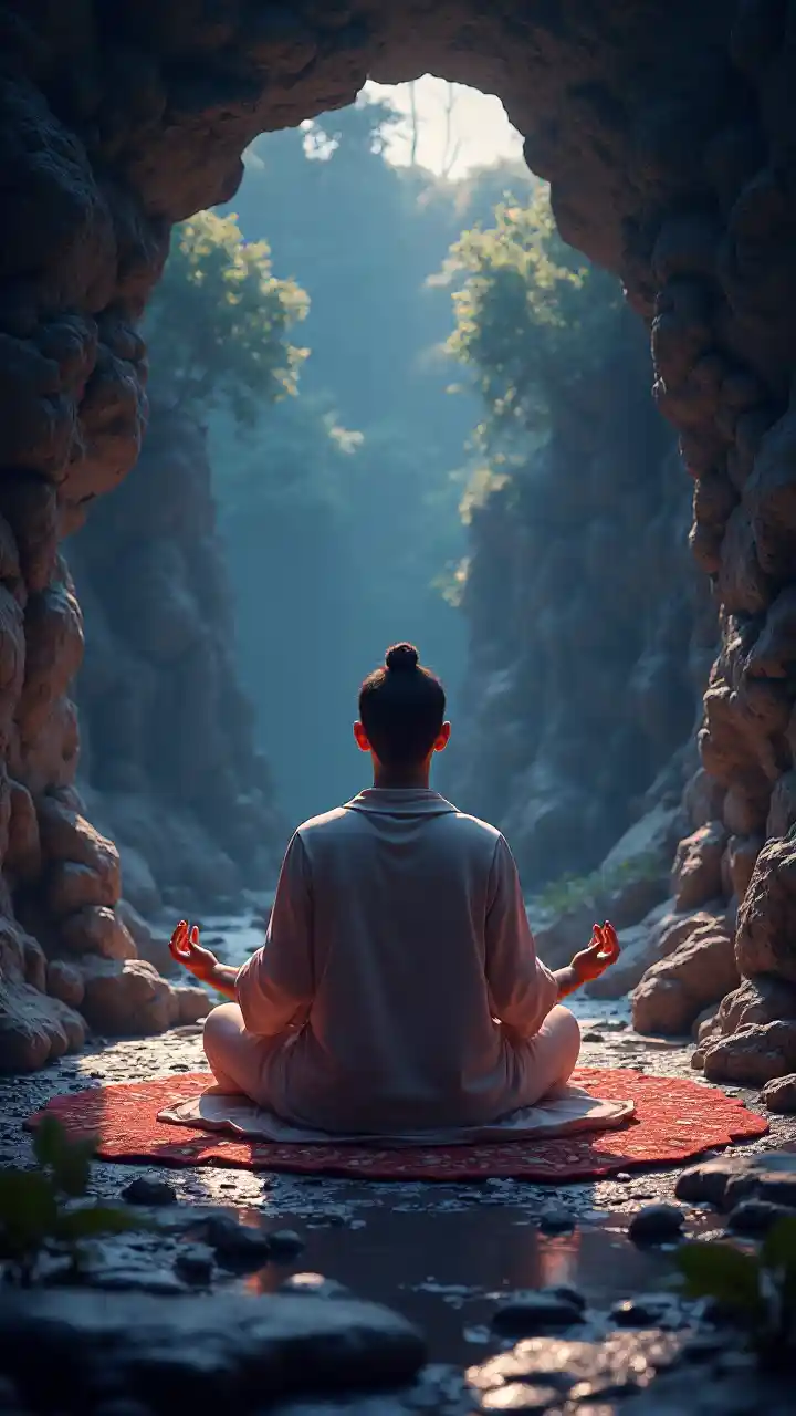 fotorealistische, gedetailleerde digitale illustratie van meditatie ruimte, chakra, ultra hoge definitie, aandacht voor detail, onwerkelijk motor, 8k, nacht, ruimte, cinematic, monk
