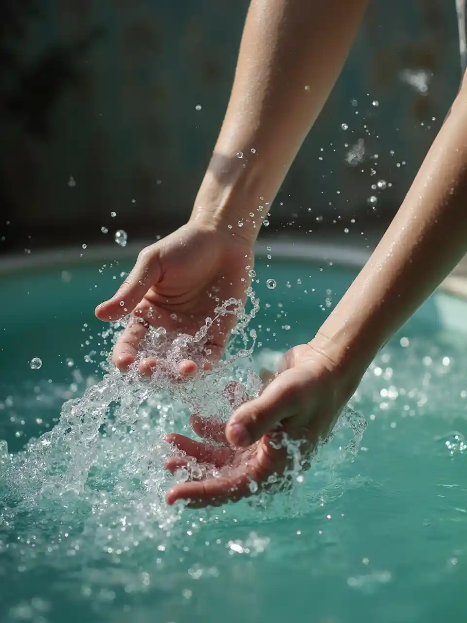 AdalynSaxofoon , melodie , handen , water , verlichting van het zwembad