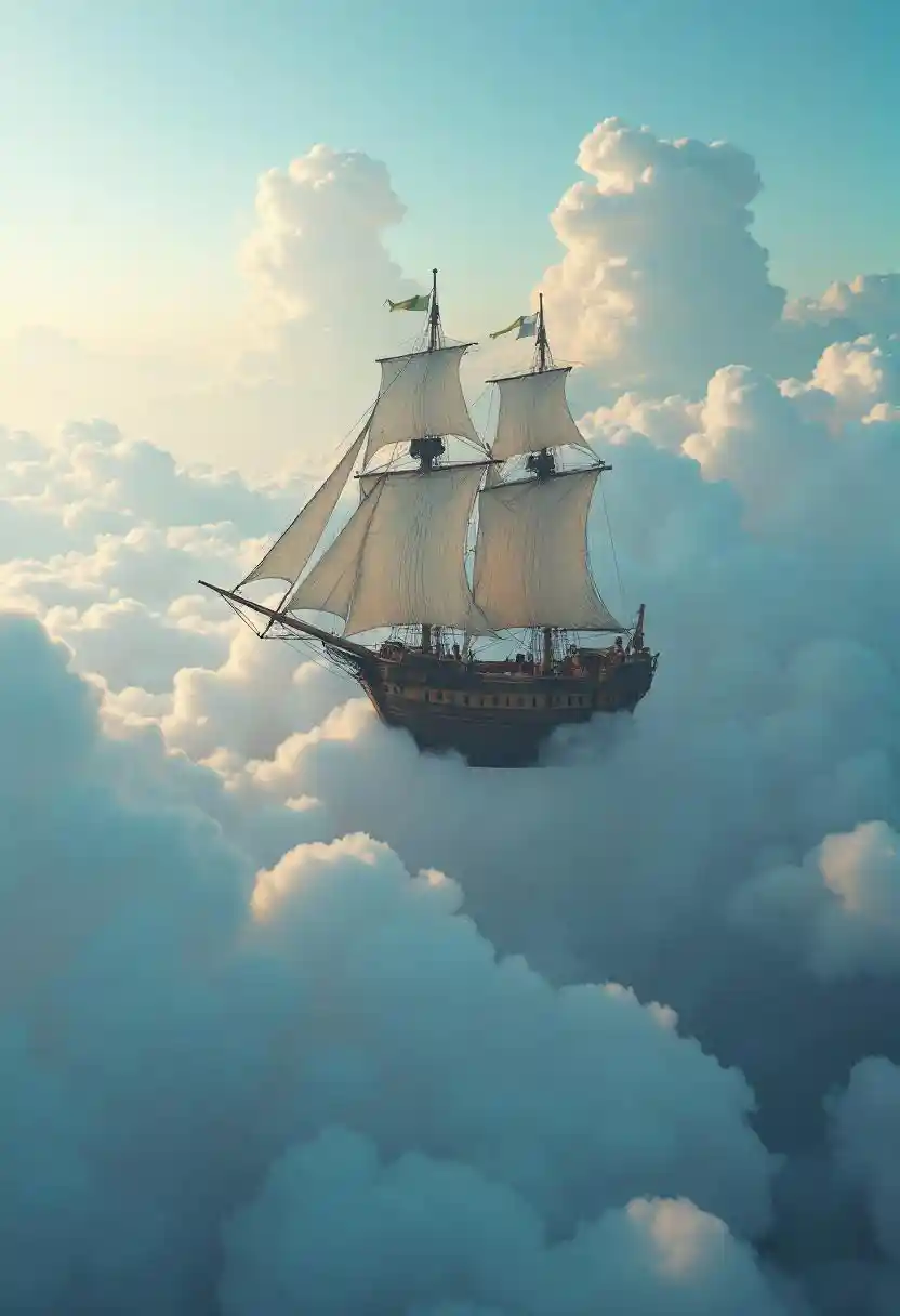 OliviaEen vliegend schip dat over een zee van wolken vaart