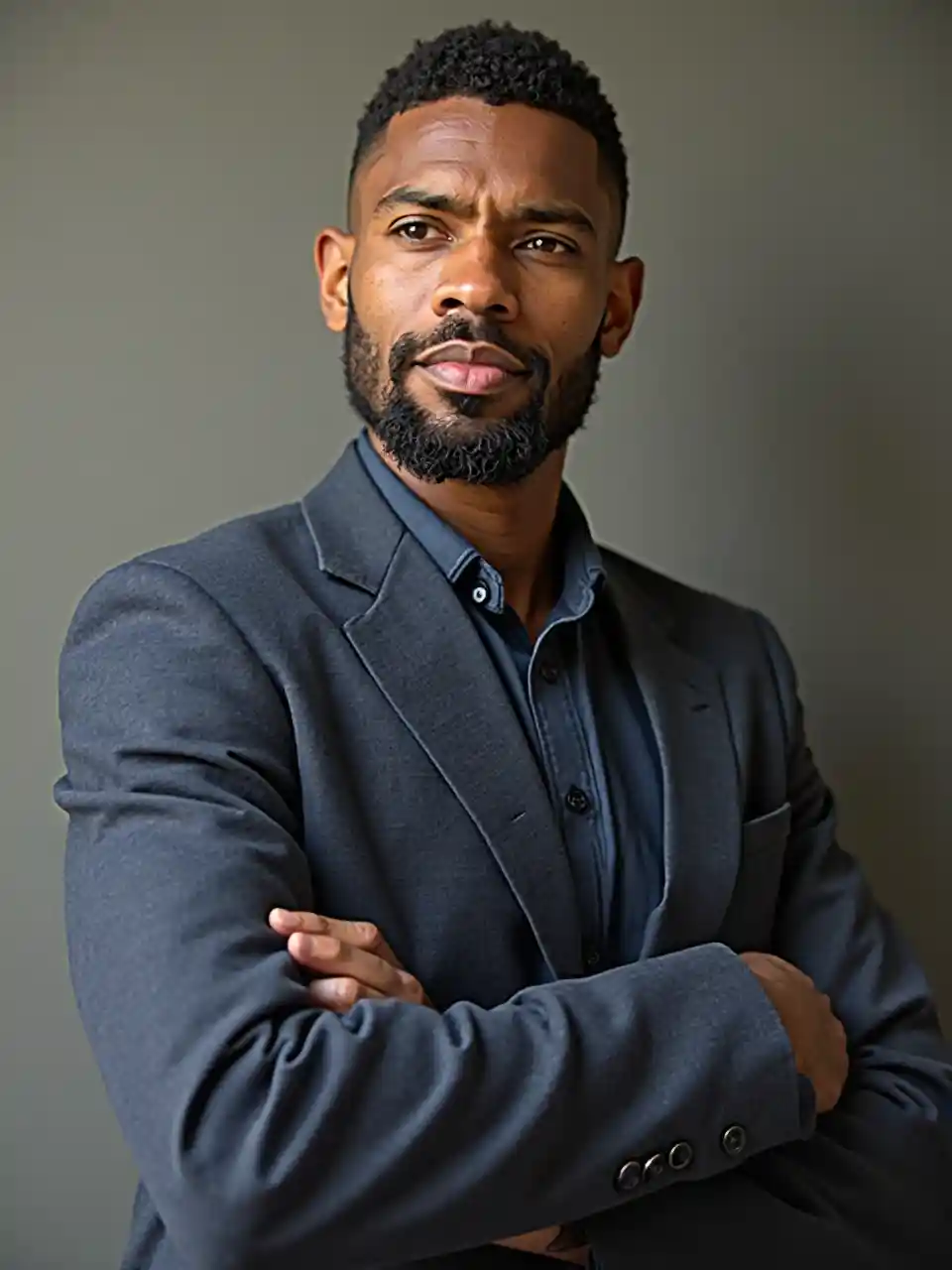 Een portret van een 39-jarige zwarte man uit Zuid-Afrika