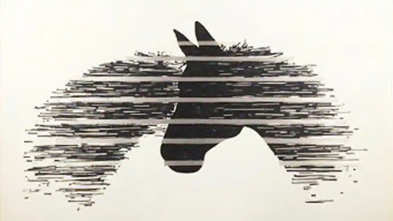 silhouet van een paardenhoofd gemaakt van horizontale gestreepte staven