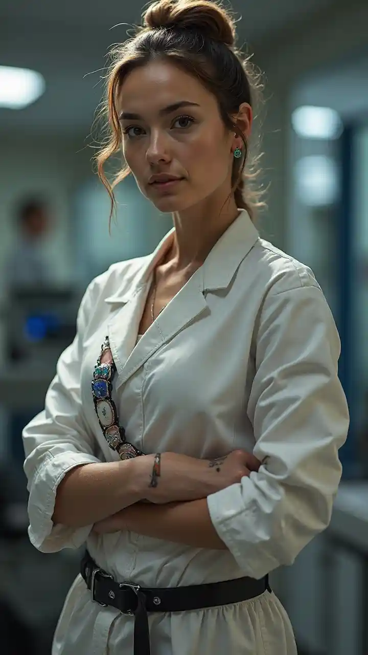 Een vrouwelijke labtechnicus met een samoerai-suite