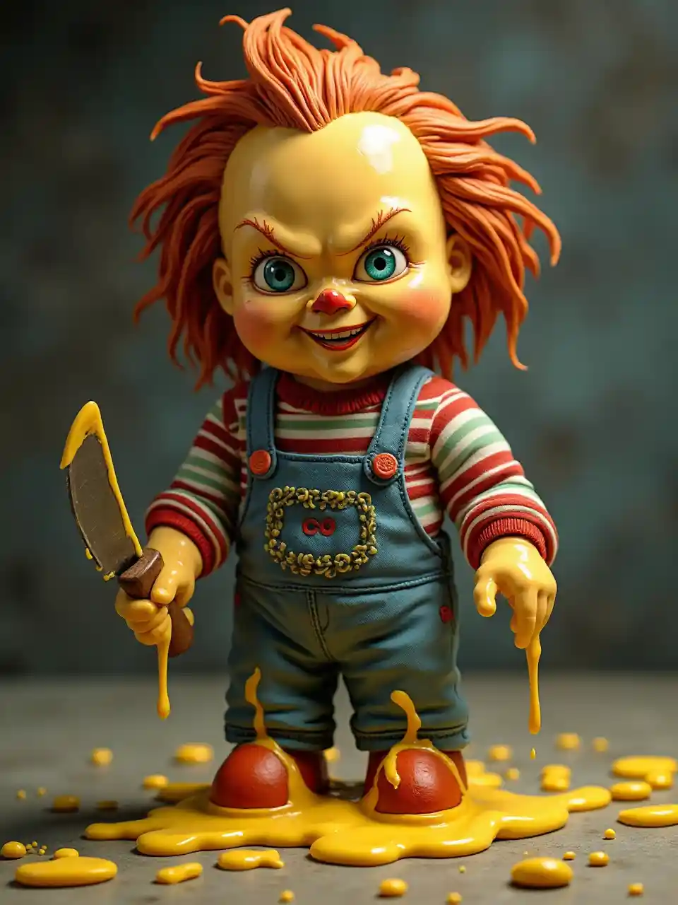 BrooklynChucky-karakteren er laget av smør, smeltet, med en kniv i hånden, alt smørfarge