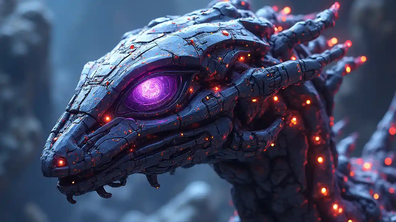 En vakkert tegnet ((('Dreadnought, den ikoniske Star Wars admiralen kjent for sin formidable tilstedeværelse og legendariske natur, styrt av en (magnific figur som legemliggjør fusjonen av natur og teknologi))) med en sleten, metallisk overflate prydet med intrikate mønstre som etterligner skallene til et gigantisk monster fra Outworld, supplert med en blanding av levende, iridescenterende farger som avgir en kraftig luminescens. Roret, en blanding av menneskelige og robotteknikker, holder et blikk som reflekterer kosmos i sin dype, violette iris, blander det organiske og syntetisk i et fantastisk utstilling av eventyr og utforskning i det enorme rommet.