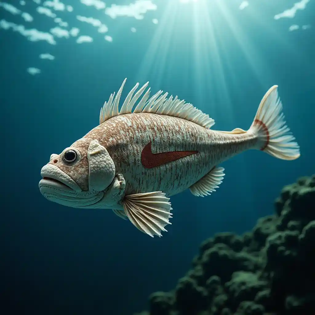 Bland en Nike løpesko med en Anglerfish. Inkludere Anglerfishs esca som en dominerende funksjon i blandingen. Svømme under vann.