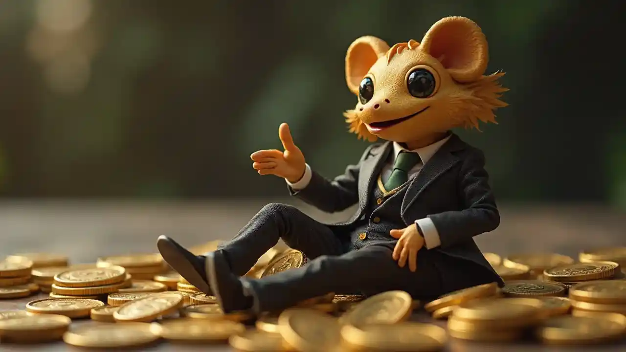 Happy Pepe Coin bærer et elegant antrekk og sitter på kryptovalutaer