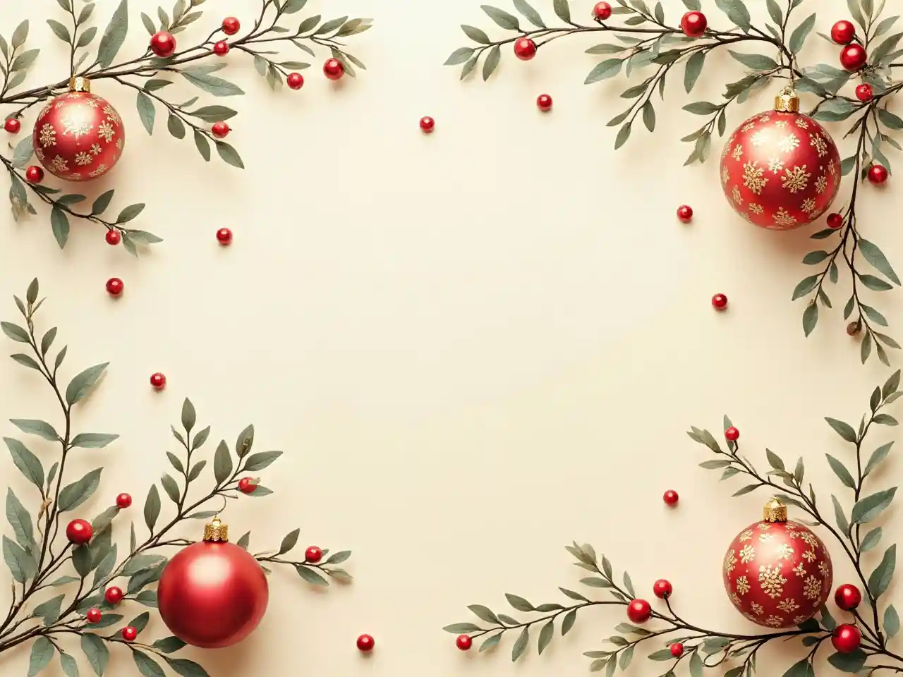 ਬੇਜ ਗੇਂਦਾਂ ਅਤੇ ਬੇਰੀਜ਼ ਨਾਲ ਕ੍ਰਿਸਮਸ ਦੀ ਵਾਲਪੇਪਰ