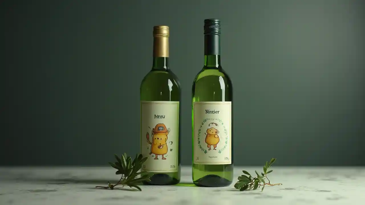 Milaਦੋ ਬੋਤਲਾਂ ਦੇ ਨਾਲ ਟੀਂਟੋ ਵਾਈਨ ਟੈਗਸ ਇੱਕ ਬੱਚੇ ਦੁਆਰਾ ਚਿੱਤਰਿਤ ਖੁਸ਼ਹਾਲ ਚਿਹਰੇ ਅਤੇ ਰੰਗਾਂ ਦੇ ਨਾਲ ਪੈਲਿਟੋਜ਼ ਦੇ ਚਿਹਰੇ, ਨਾਲ ਗਰੀਸ ਪਿਛੋਕੜ ਦੇ ਨਾਲ ਪੇਸ਼ੇਵਰ ਮਿਨਲਿਸਟ ਫੋਟੋਗ੍ਰਾਫਿਕ ਸੈਟ
