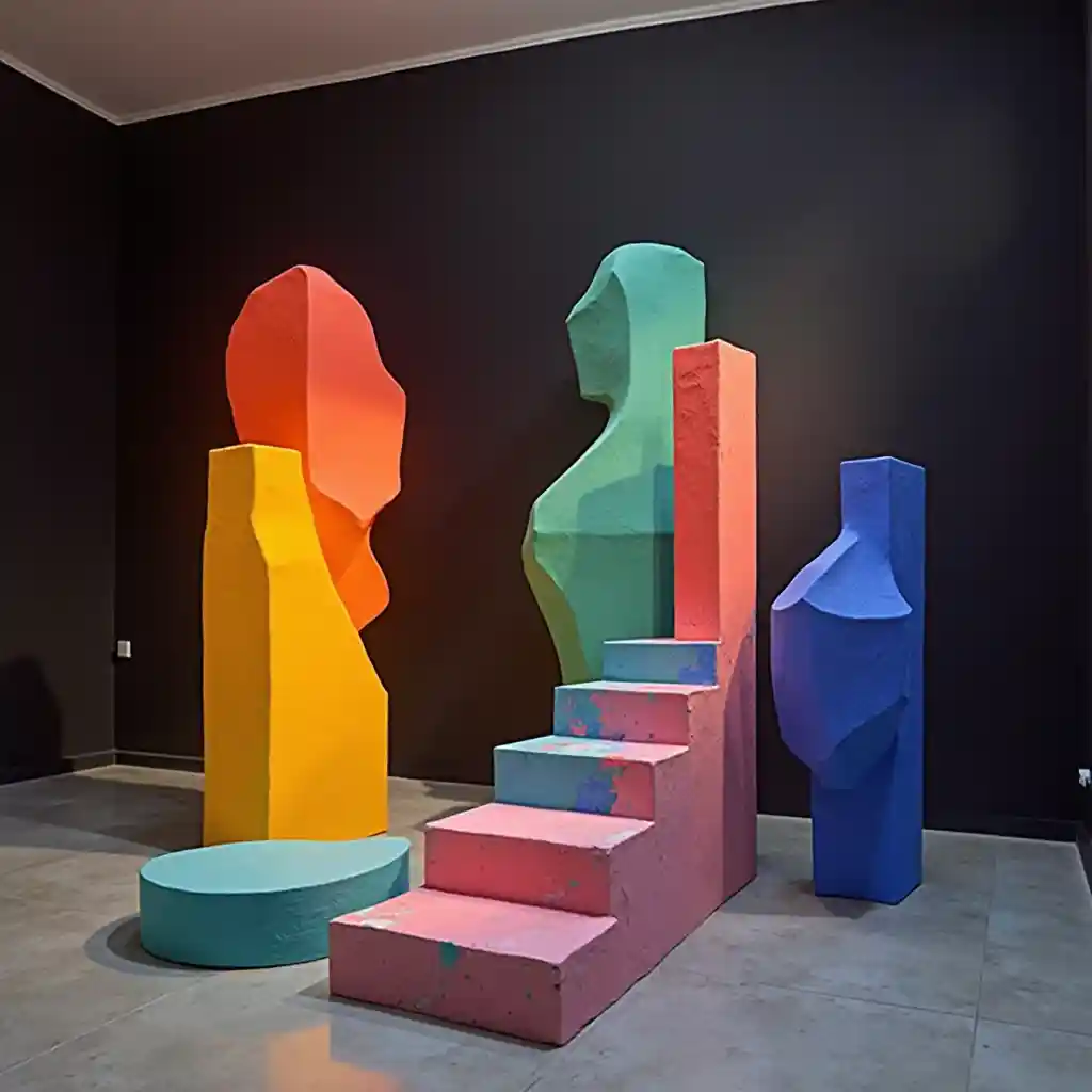ਲੁਈਸ ਬਾਰਗਾਨ ਦੀ ਆਰਕੀਟੈਕਚਰਲ ਰਚਨਾ ਤੋਂ ਪ੍ਰੇਰਿਤ ਲੈਟਕਸ ਦੇ ਰੰਗਾਂ ਦੀਆਂ ਮੂਰਤੀਆਂ ਇੱਕ ਮਿਨਿਸਟ ਰੰਗ ਦੇ ਮੈਟ ਵਿੱਚ ਅਰਧ-ਪ੍ਰਕਾਸ਼ਕ ਤੰਦ ਨਾਲ