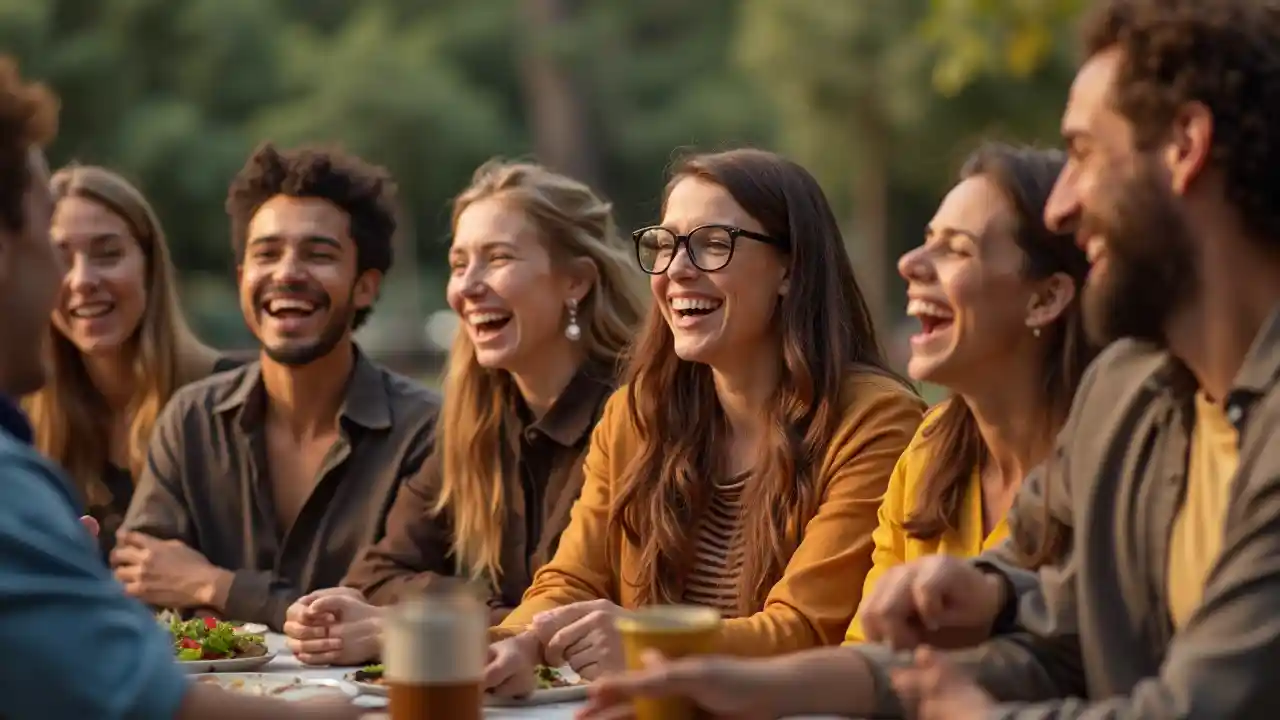 ਵਿਭਿੰਨ ਵਿਅਕਤੀਆਂ ਦਾ ਇੱਕ ਸਮੂਹ ਹੱਸਦਾ ਹੈ ਅਤੇ ਇੱਕ ਦੂਜੇ ਦੀ ਕੰਪਨੀ ਦਾ ਅਨੰਦ ਲੈਂਦਾ ਹੈ, ਰਾਜਨੀਤਿਕ ਸਹੀ ਜਾਂ ਰੱਦ ਸਭਿਆਚਾਰ ਦੇ ਦਬਾਅ ਤੋਂ ਪੂਰੀ ਤਰ੍ਹਾਂ ਪ੍ਰਭਾਵਿਤ ਨਹੀਂ ਹੁੰਦਾ.