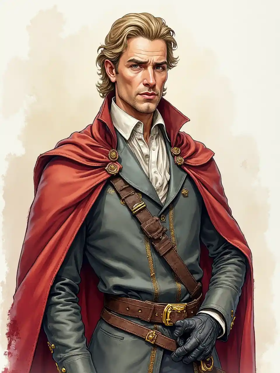ਮੱਧਕਾਲੀ ਸੂਟ ਵਿੱਚ ਇੱਕ ਉੱਤਮ ਆਦਮੀ ਦੇ ਰੂਪ ਵਿੱਚ ਡੌਨ ਜੌਨਸਨ ਦੇ ਡੰਜਨਾਂ ਅਤੇ ਡ੍ਰੈਗਨਜ਼ ਸ਼ੈਲੀ ਵਿੱਚ ਸਕੈਚ ਪੋਰਟਰੇਟ