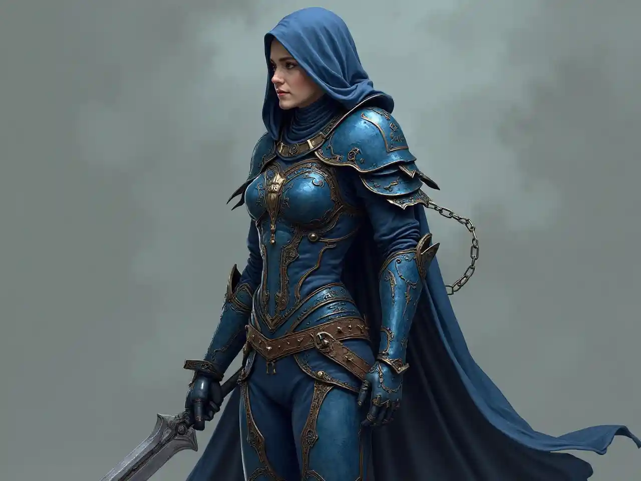 Laylaਇੱਕ ਔਰਤ ਨੂੰ ਬਣਾਉਣ ਲਈ, ਨੀਲੇ ਬਖਤਰ, ਇੱਕ ਚੇਨਡ ਖੋਤੇ