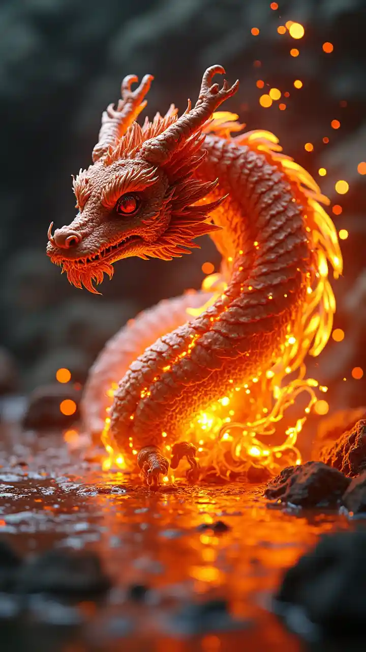 ਇੱਕ ਤਰਲ ਪਿਘਲੇ ਹੋਏ ਲੋਹੇ ਦਾ ਏਸ਼ੀਆਈ ਅਜਗਰ ((ਸ਼ਿਲਪਕਾਰੀ, ਗੁੰਝਲਦਾਰ ਅਤੇ ਵਿਸਤ੍ਰਿਤ, ਅੱਗਲੀ ਚਮਕ) ਪਿਘਲੇ ਹੋਏ ਮੈਗਮਾ (ਅਗਨੀ, ਮੈਗਮਾ ਚਮਕ) ਦੇ ਇੱਕ ਪੂਲ ਤੋਂ ਬਾਹਰ ਆ ਰਿਹਾ ਹੈ, 500 mp uhd, ਬਹੁਤ ਯਥਾਰਥਵਾਦੀ , ਤਿੱਖੀ ਫੋਕਸ , ਕੋਈ ਧੁੰਦ