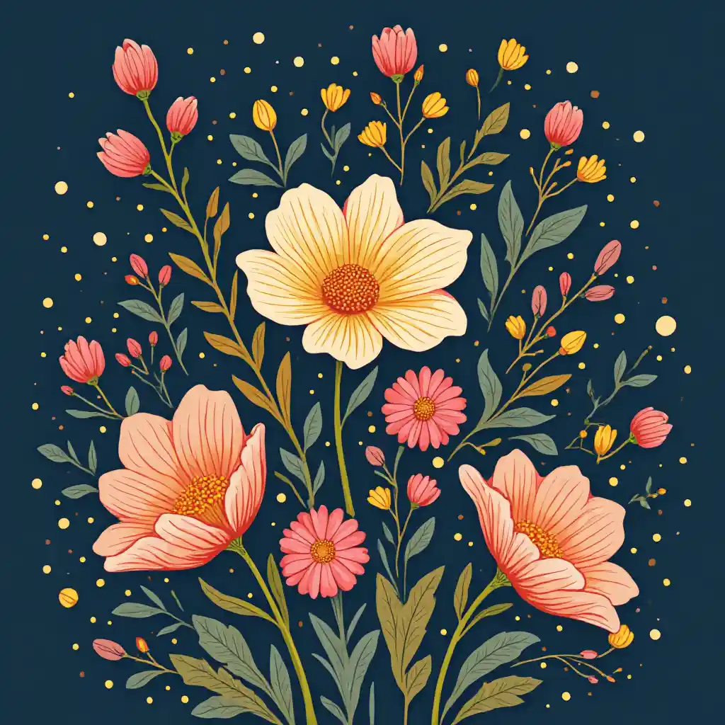 ਕਾਰਟੂਨ ਸ਼ੈਲੀ ਵੈਕਟਰ ਆਰਟ ਦੇ ਵਿਰੁੱਧ ਚਮਕਦਾਰ ਰੰਗਾਂ ਦੇ ਨਾਲ ਵਿੰਸਟ ਫੁੱਲ ਆਰਟ