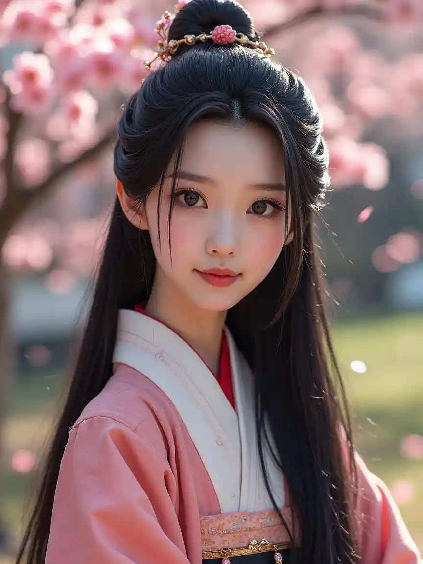 ਚੈਰੀ ਦੇ ਫੁੱਲ, ਧੁੰਦਲਾ ਪਿਛੋਕੜ, ਡਿੱਗਣ ਵਾਲੇ ਪੱਤੇ, ਦਰੱਖਤ, ਬਾਹਰ, 24 ਸਾਲ ਦੀ ਜਪਾਨੀ ਔਰਤ 、ਹੇਨ ਸ਼ਾਨ, 12 ਟੁਕੜੇ ਪਹਿਨਣ, ਚਮਕਦਾਰ ਕਾਲਾ ਵਾਲ, ਸੁਪਰ ਲੰਬਾ