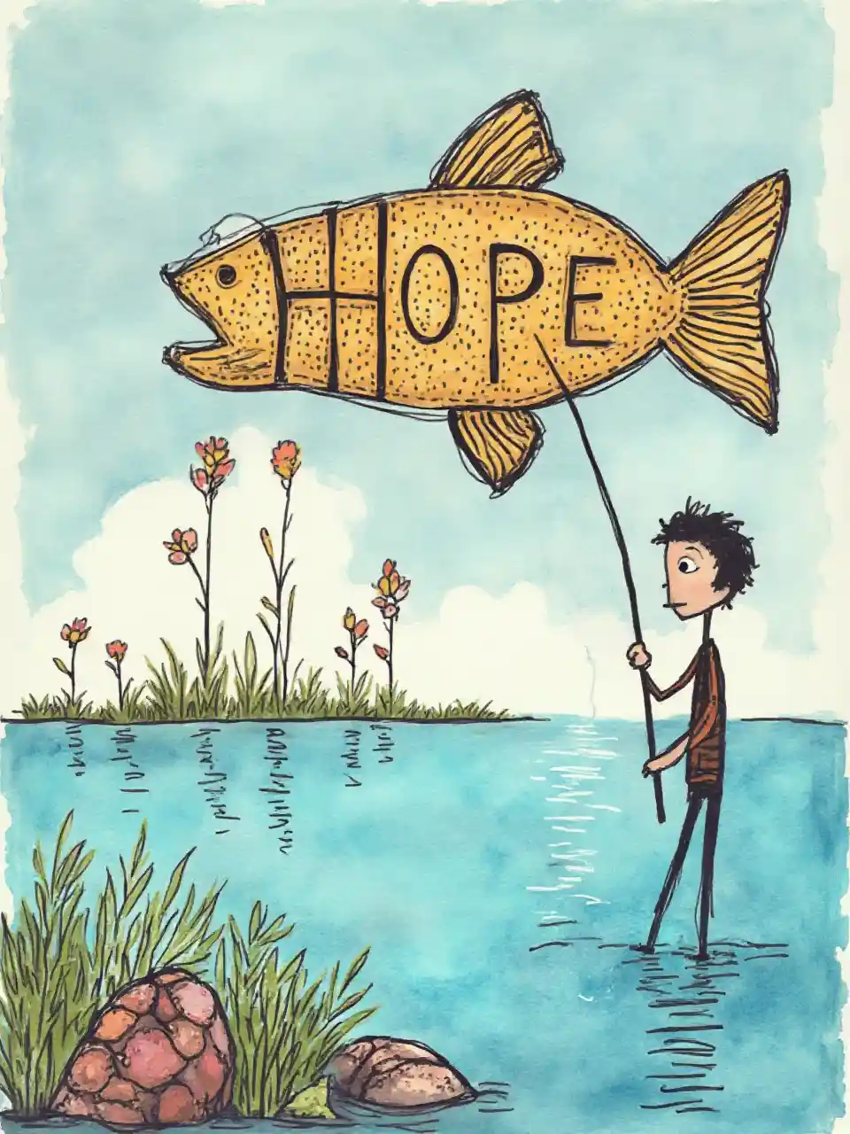ਉਮੀਦ ਨੂੰ ਮੱਛੀ ਦੇ ਰੂਪ ਵਿਚ ਪੇਸ਼ ਕਰਨ ਵਾਲੀ ਇੱਕ ਰਚਨਾਤਮਕ ਡੂਡਲ