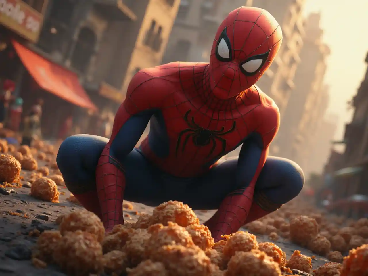 ਪਨੀਪੁਰੀ ਨਾਲ ਭਾਰਤ ਵਿੱਚ ਸਪਾਈਡਰਮੈਨ