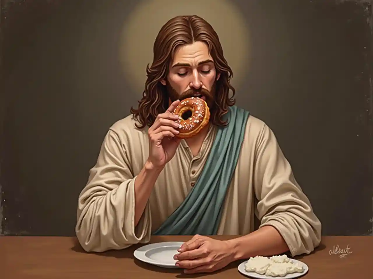 ਯਿਸੂ ਇੱਕ ਮਿੱਠੀ ਡੋਨਟ ਖਾ ਰਿਹਾ ਹੈ