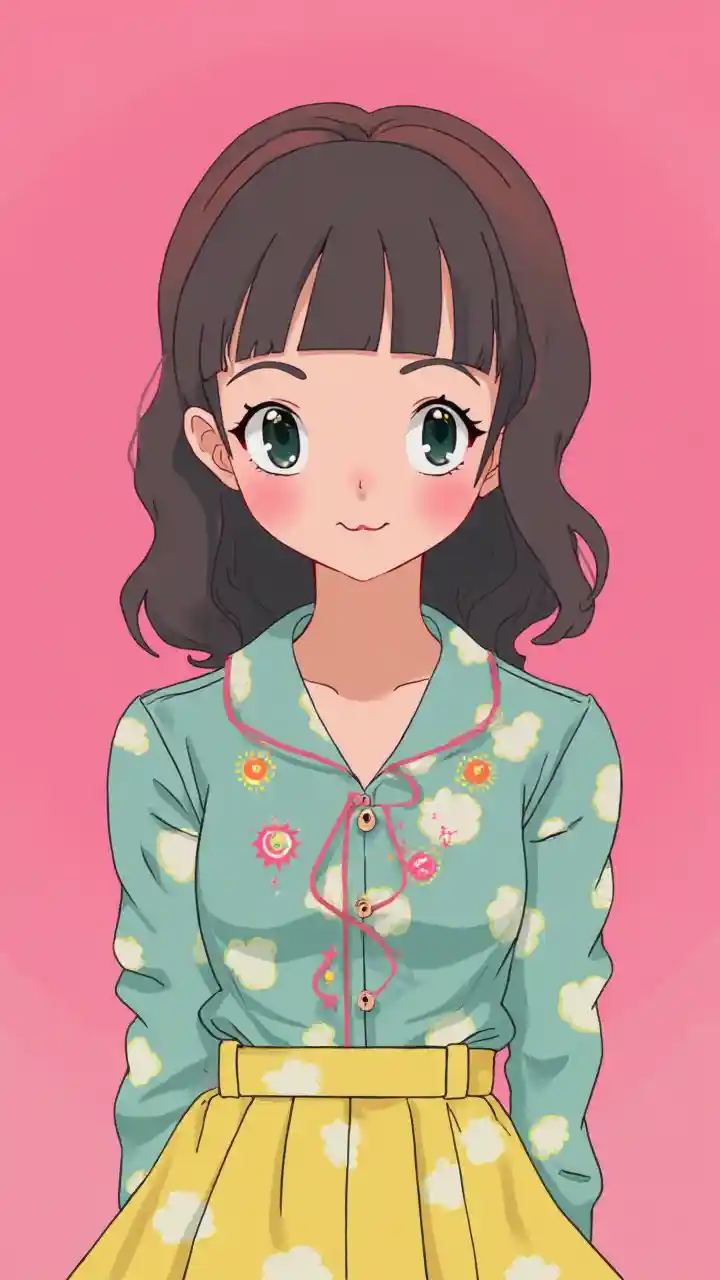 MadelynIlustracja postaci animowanej przez Jimmy'ego Marble'a i Takashi Murakami'ego na różowym tle