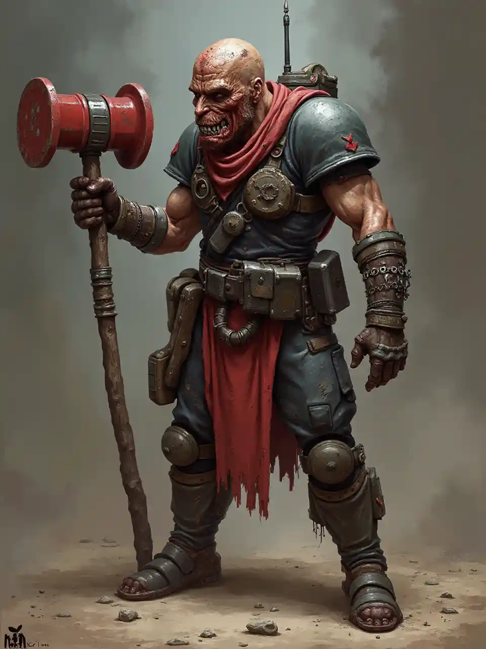 LunaBandyta grunt używa czerwonego stalowego młotka