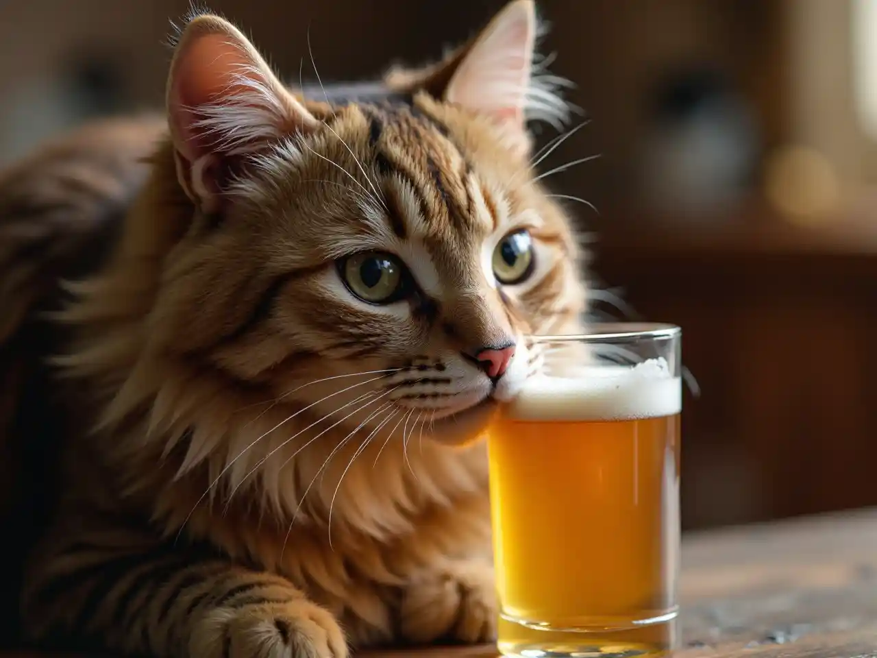 Kot, pijący piwo, pyszne,