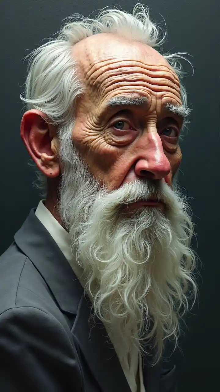 ruslanaFragmentacja melancholicznego starszego człowieka; perspektywa kubistyczna rozbija cechy na geometryczne kształty, uchwytując jego długą białą brodę i zmęczony wyraz twarzy z głębią i abstrakcją.