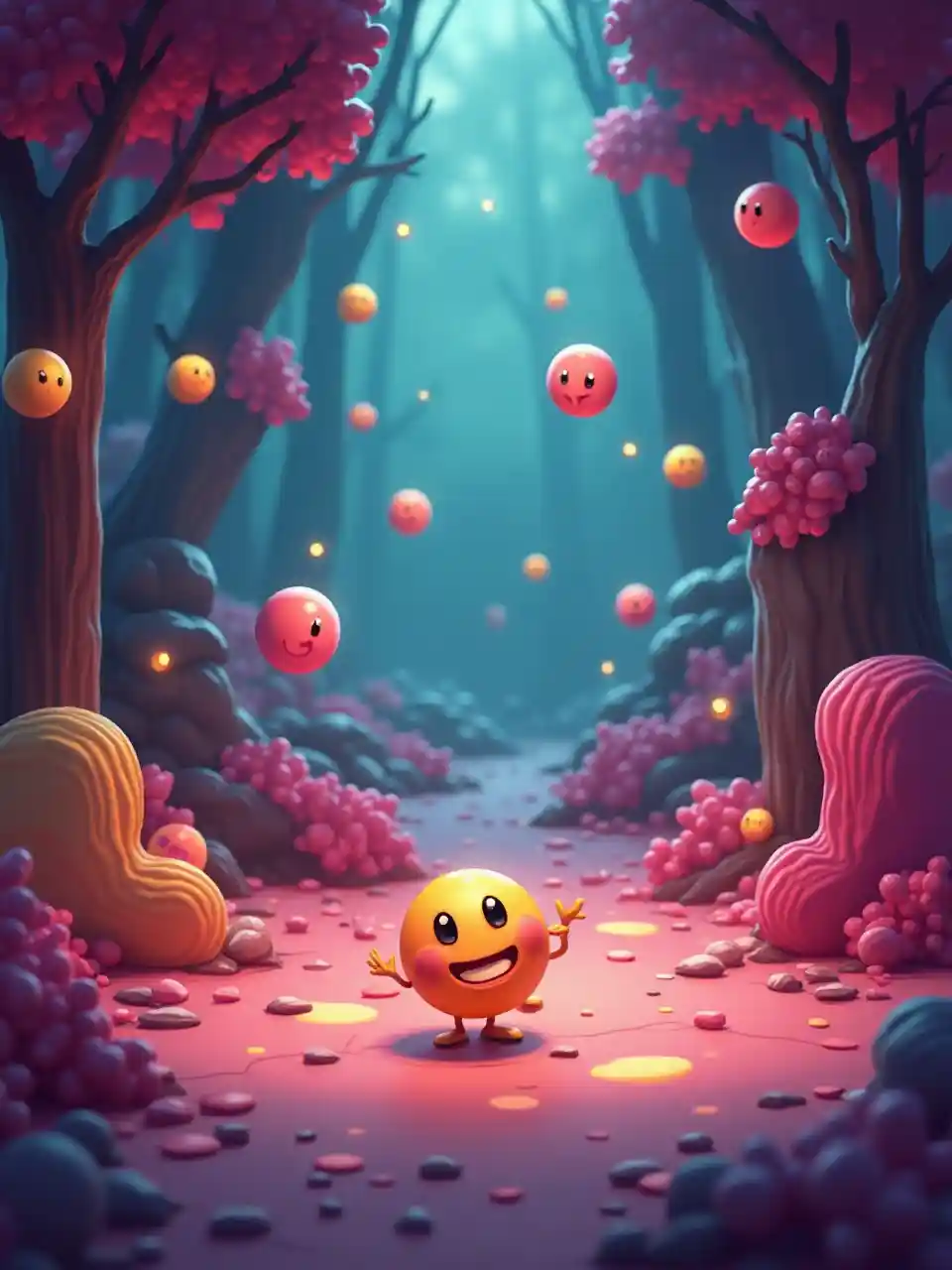 Scena rozpoczynająca mini grę, która pokazuje proste tańce piłek, Włączyć przycisk startowy i charakter powitalny. Pokaż logo gry , które jest ultra jasne .
