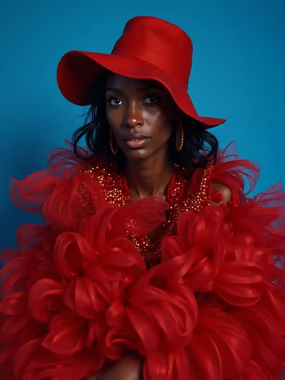 Donyale Luna, 2023, awangarda, po prostu RGP, sesja zdjęciowa, ubrana na czerwono, niebiesko
