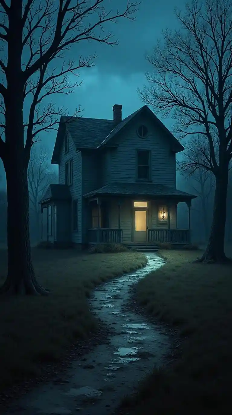 Pewnej zimnej, burzliwej nocy czterech przyjaciół - Jake'a, Sarah'a, Marka i Emmy - postanowiło zwiedzanie opuszczonego domu na skraju miasta. Plotki mówią, że jest nawiedzona, ale nie wierzą w duchy. Weszli do domu z latarkami, a za nimi głośno szarpnęły drzwi. W środku powietrze było gęste pyłem, a każdy krok odbijał się w ciemnościach. Gdy szli głębiej, zaczęły się słyszeć dziwne dźwięki - kroki, szept i słaby dźwięk płaczu. "To tylko wiatr", powiedział Jake, starając się wszystkich uspokoić. Nagle Sarah krzyczała. Na końcu korytarza pojawiła się cienia, oczami świecącymi czerwono. Zamarzli ze strachu, nie mogąc się ruszyć. Postać zaczęła się zbliżać powoli, jej kroki coraz głośniej. "Biegnij!" Krzyknął Mark, łamanie ciszy. Pobiegli w stronę drzwi, ale ona zacisnęła się siłą, która wstrząsnęła całym domem. Byli uwięzieni. Gdy postać zbliżała się, przyjaciele, przerażeni, sięgali. Ale gdy cień dotarł do nich, zniknął. Drzwi otworzyły się od siebie, pozwalając im uciec w nocy. Deszcząc ciężko, uciekli bez patrzenia wstecz. Od tego dnia nikt z nich nie wspominał o tym, co się stało w domu, ale wszyscy wiedzieli jedno: nie byli sami tej nocy.
