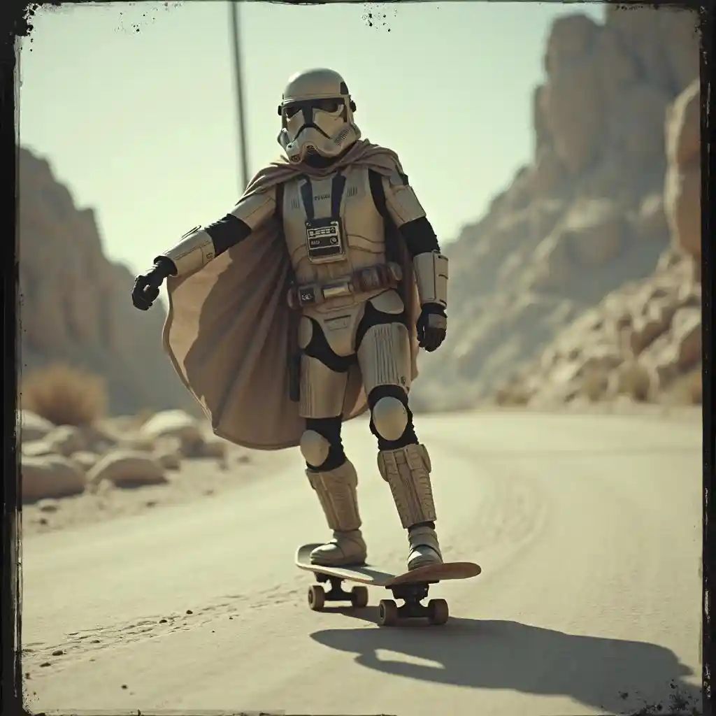Wojny Gwiazd Imperialny żołnierz na desce. Zastosuj do zdjęcia styl vintage i rozwijaj go za pomocą kodaku.