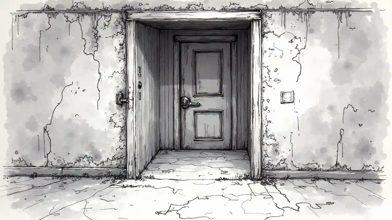Rysunek otwartych drzwi w piwnicy.
