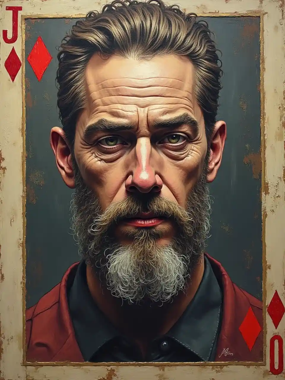 Scottrysunek oleju, diamenty, człowiek z brodą