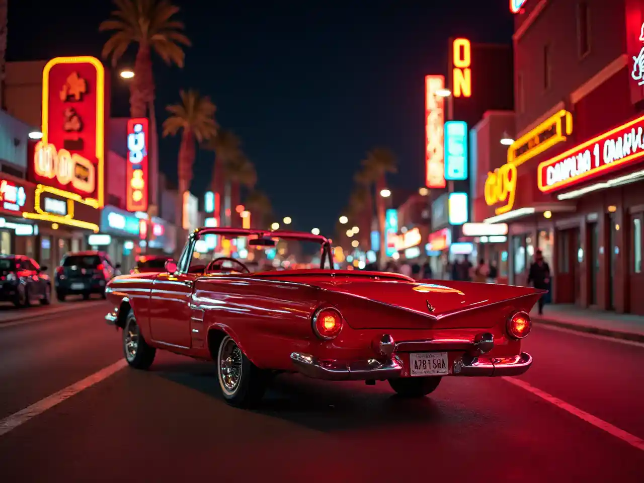 grace/Czerwony sklep/na ulicy Las Vegas/w nocy z czerwonymi światełkami neonowymi/