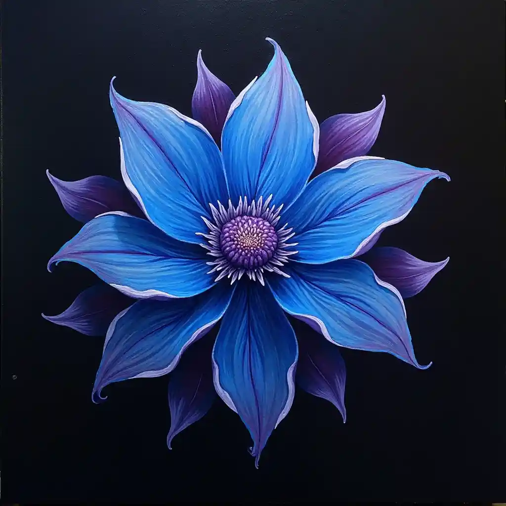 CalebMalowanie magicznego niebieskiego i fioletowego kwiatu na czarnym tle