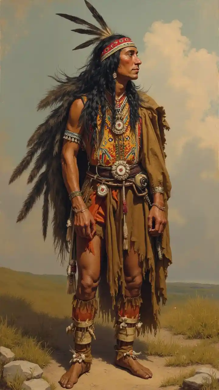 SebastianPortret rdzennej Ameryki, obrazek w stylu George'a Catlina