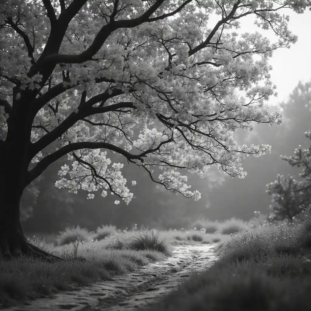 Eastonrealistyczny, piękny fotograf, fotografia czarno-biała:1.37, fotografia czarno-biała:1.37, z boku:1.21, fotorealistyczny, bardzo realistyczny fotografii, drzew