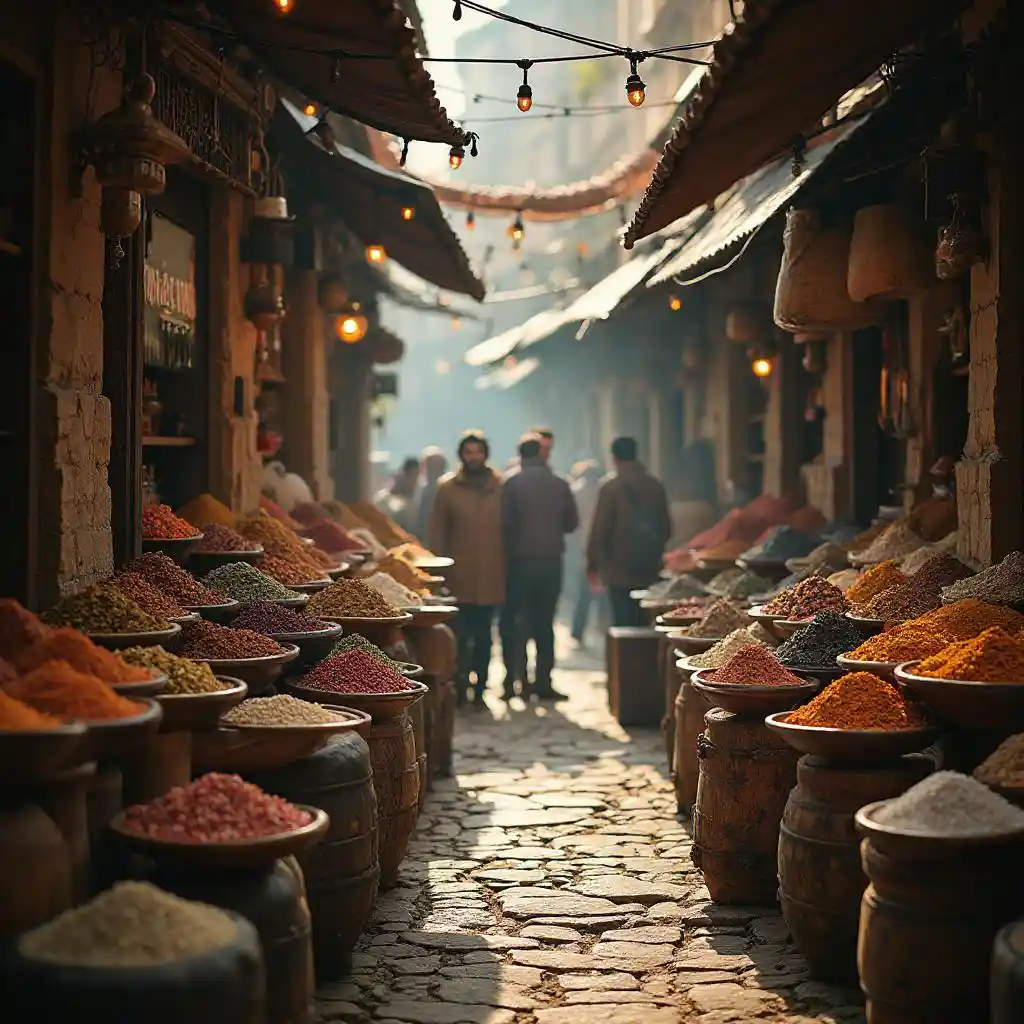 ColtenA bustling old-world marketplace, aromas of spices filling the air.