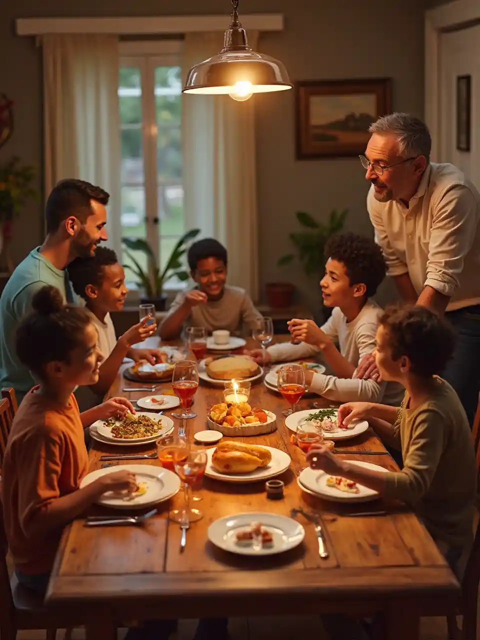SebastianSzczęśliwego Święta Dziękczynienia, rodzinnej kolacji, czarnej amerykańskiej rodziny,