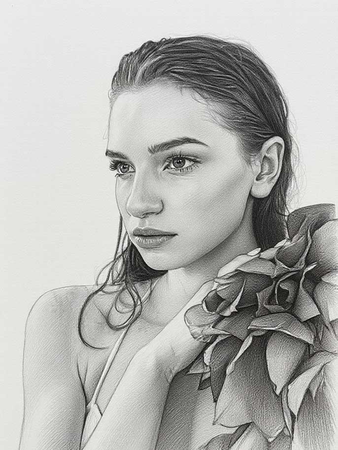Assim que carregar a sua foto, a IA vai automaticamente começar o processo de transformar a sua imagem num esboço impressionante e realista. Não é preciso ajustes manuais a IA trata de tudo por si.