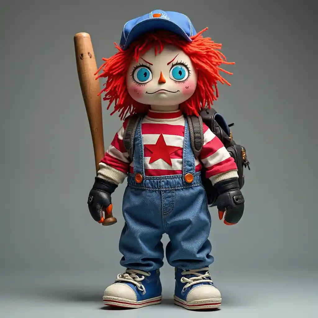 Uma boneca raivosa e psicótica. O Andy a tomar esteróides. Alto, forte, atlético. Cabelo de fio vermelho, boné de basebol azul virado para trás. Pele de tela, nariz triângulo laranja. Olhos de vidro azul brilhante, quase humanos. Um ar irritado. T-shirt com listras horizontais vermelhas e brancas, uma estrela vermelha na frente da camisa. Calças jeans azuis, luvas de couro pretas sem dedos. Calçados de lona azul e branco. Ele carrega um taco de basebol, sempre pronto para quebrar alguma coisa. Ele também carrega uma mochila da escola nas costas.