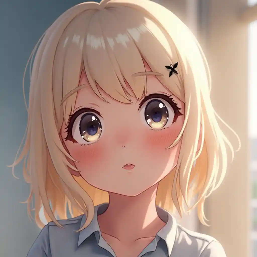 A garota que tem cabelo loiro platina, estilo de anime 3D, olhos grandes de anime, rosto de anime, cabelo muito realista e detalhado de anime, bonito, sonhador, criativo, estético, realista, detalhado, gráficos de animação 3D, ângulo cinematográfico, luz cinematográfica, 8K, ultra alta resolução --v 5 --q 1 --s 500