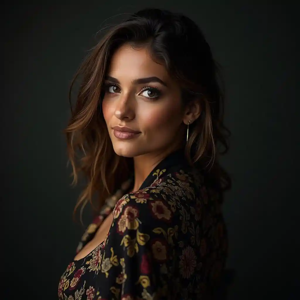 retrato fotográfico artístico, iluminação de estúdio para mulher bonita árabe