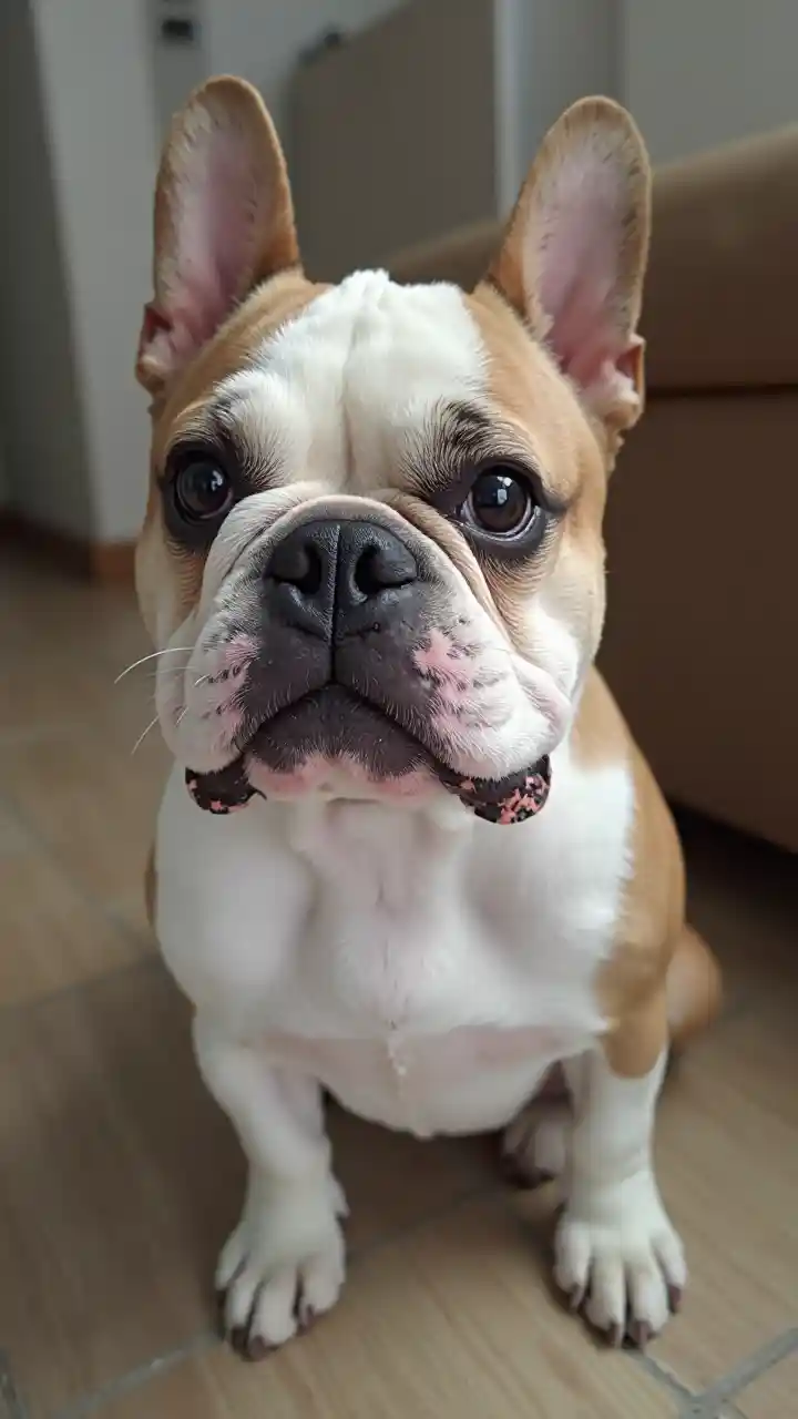 Quero uma imagem de um bulldog francês branco vaca com alas